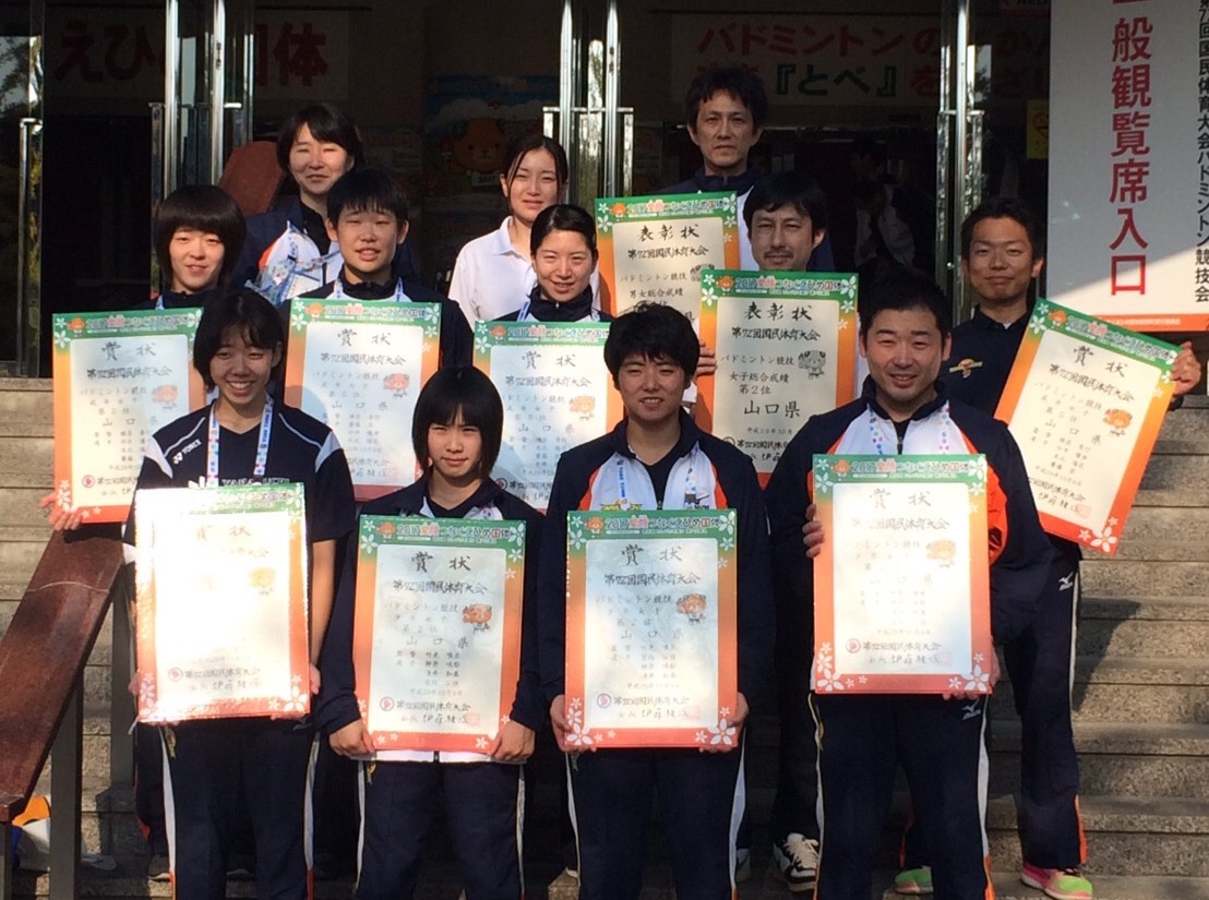 この度の愛媛国体では、少年女子が山口県バドミントン最高成績の国体準優勝を成し遂げ、成年女子が5位入賞を果たしました。
