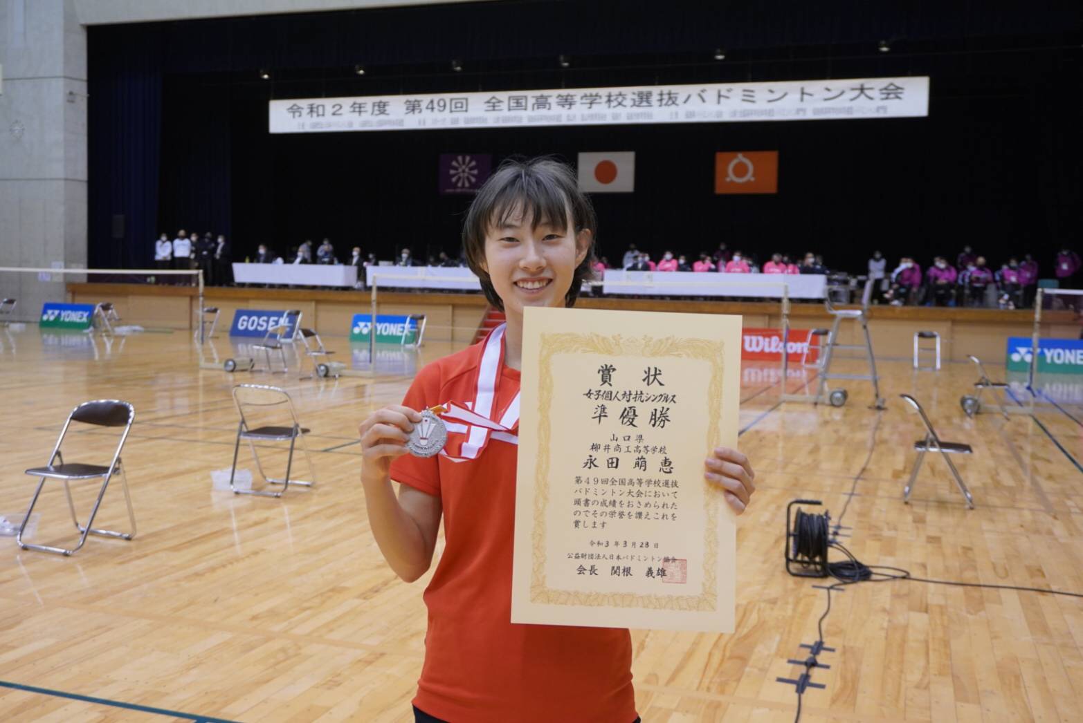 令和3年3月25日~28日 福島県/郡山市,福島市で開催されました、第49回全国高等学校選抜バドミントン大会(福島大会)において、柳井商工女子が学校対抗・優勝、および個人対抗・優勝,準優勝の快挙を成し遂げました。